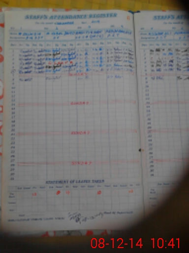 | CNIC | Full Name | Designation | R/C | Absence During Last Calender Month |