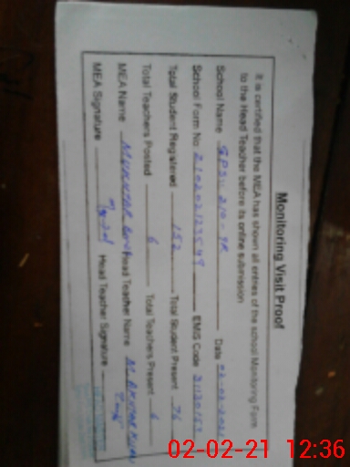 | Certified that this School was Inspected by the Undersigned MEA/DMO Today and the Information Stated Above is as Per Record. | |||||