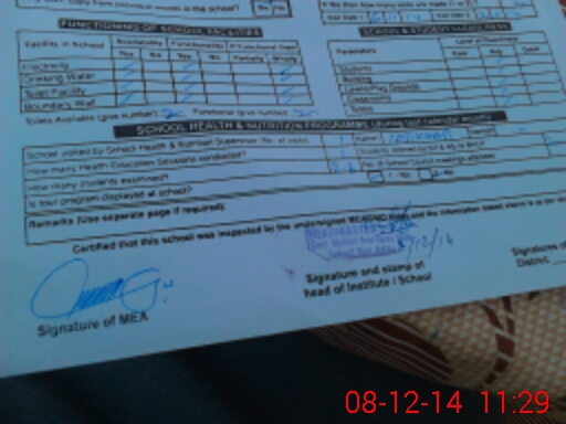 | Certified that this School was Inspected by the Undersigned MEA/DMO Today and the Information Stated Above is as Per Record. | |||||