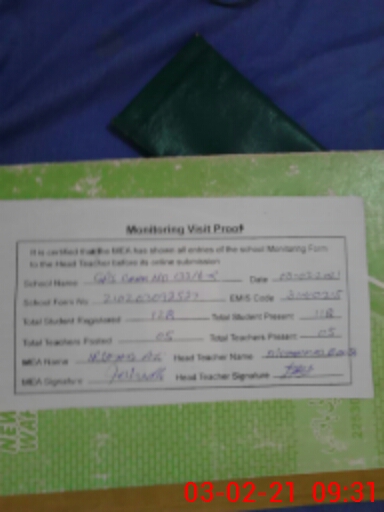 | Attendance Register | Head Teacher | MEA with School | Visit Proof |