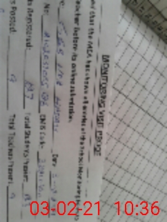 | Monitoring Date: 03-02-2021 | Start Time: 03-02-2021 10:17 AM | End Time: 03-02-2021 10:36 AM | Name of MEA: AH**** NA**** (r**** | |