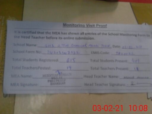 | EMIS Code: 38110022 | Name of School: GHS CTTM BHAKKAR MANDI TOWN | |||