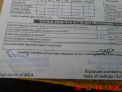 | Certified that this School was Inspected by the Undersigned MEA/DMO Today and the Information Stated Above is as Per Record. | |||||