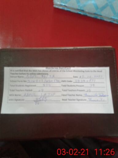 | Certified that this School was Inspected by the Undersigned MEA/DMO Today and the Information Stated Above is as Per Record. | |||||