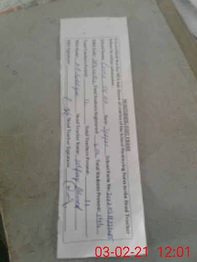 | Certified that this School was Inspected by the Undersigned MEA/DMO Today and the Information Stated Above is as Per Record. | |||||
