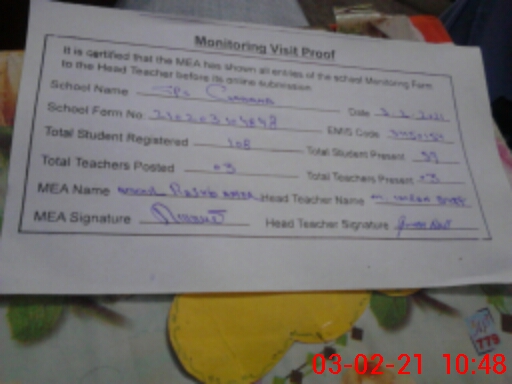 | Certified that this School was Inspected by the Undersigned MEA/DMO Today and the Information Stated Above is as Per Record. | |||||