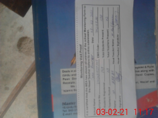 | Attendance Register | Head Teacher | MEA with School | Visit Proof |