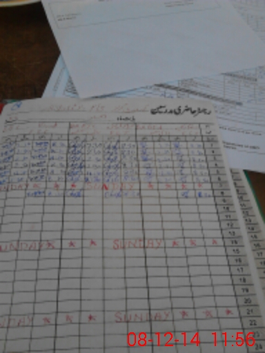 | CNIC | Full Name | Designation | R/C | Absence During Last Calender Month |