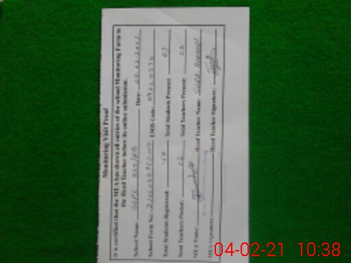 | Attendance Register | Head Teacher | MEA with School | Visit Proof |