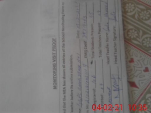 | Attendance Register | Head Teacher | MEA with School | Visit Proof |