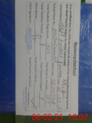 | Attendance Register | Head Teacher | MEA with School | Visit Proof |