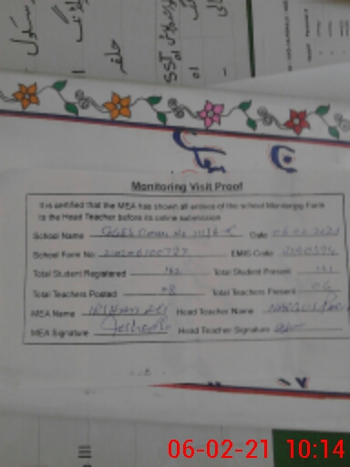 | Certified that this School was Inspected by the Undersigned MEA/DMO Today and the Information Stated Above is as Per Record. | |||||