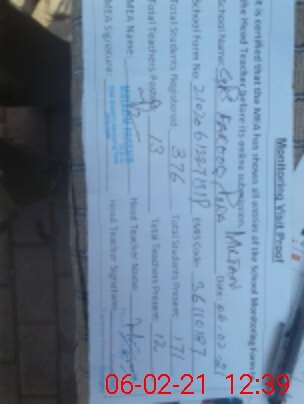 | Attendance Register | Head Teacher | MEA with School | Visit Proof |
