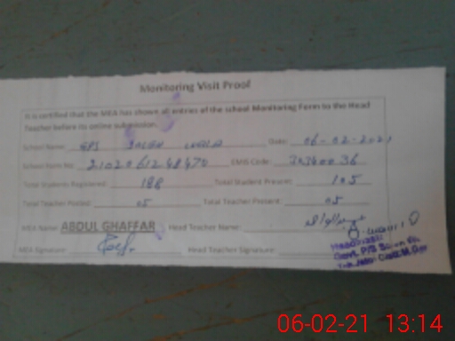 | EMIS Code: 32340036 | Name of School: GPS SALEH WALA | |||