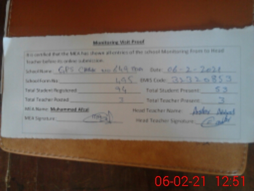 | EMIS Code: 32320853 | Name of School: GPS CHAK NO. 649/TDA | |||