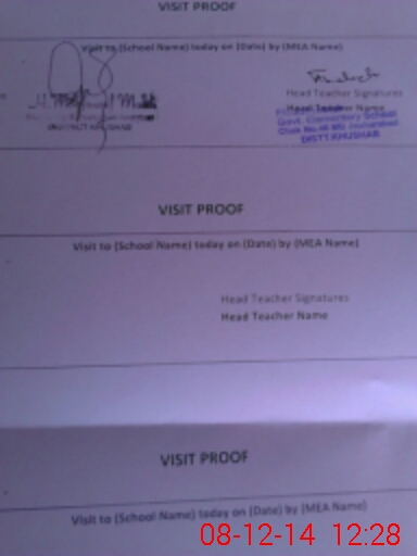 | Attendance Register | Head Teacher | MEA with School | Visit Proof |