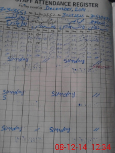 | CNIC | Full Name | Designation | R/C | Absence During Last Calender Month |