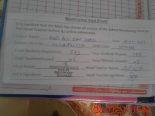 | Certified that this School was Inspected by the Undersigned MEA/DMO Today and the Information Stated Above is as Per Record. | |||||