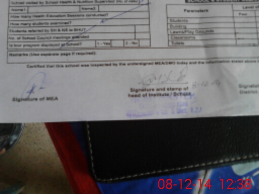 | Certified that this School was Inspected by the Undersigned MEA/DMO Today and the Information Stated Above is as Per Record. | |||||