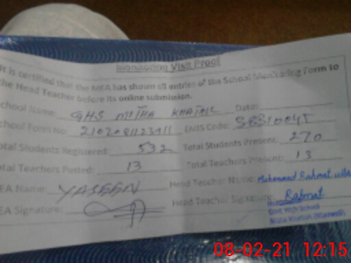 | EMIS Code: 38310045 | Name of School: GHS MITHA KHATAK | |||