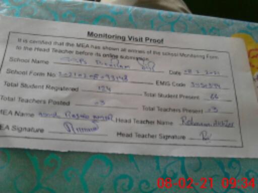 | Name: RE**** AK**** Designation: (School Headmaster's/Headmistress's) PST Phone/Cell Number: 03**** |