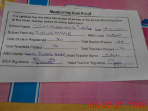 | Attendance Register | Head Teacher | MEA with School | Visit Proof |