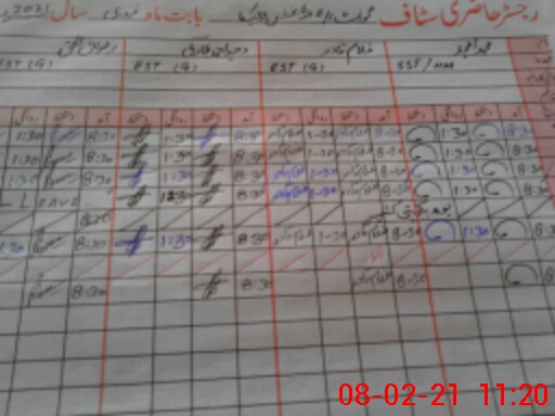 | CNIC | Full Name | Designation | R/C | Absence During Last Calender Month |