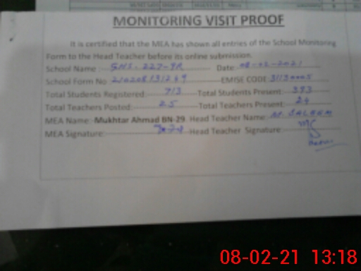 | EMIS Code: 31130005 | Name of School: GHS CHAK 227/9-R | |||