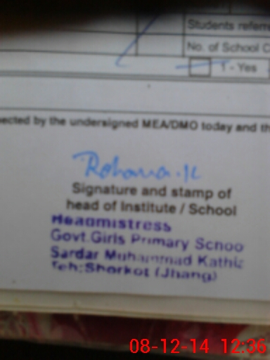 | Certified that this School was Inspected by the Undersigned MEA/DMO Today and the Information Stated Above is as Per Record. | |||||