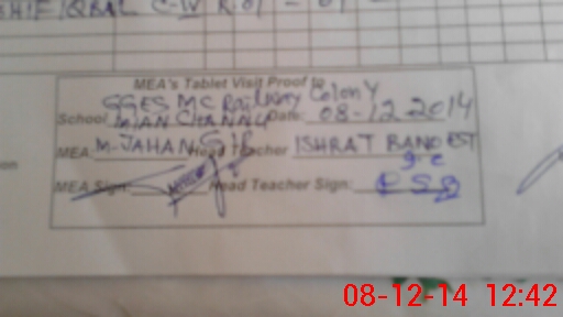 | Remarks (Use Separate Page if Required): DURING VISIT KASHIF IQBAL C IV FOUND ABSENT FROM SCHOOL | |||||