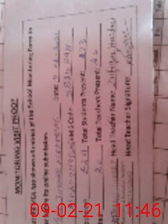 | Attendance Register | Head Teacher | MEA with School | Visit Proof |