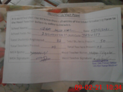 | Certified that this School was Inspected by the Undersigned MEA/DMO Today and the Information Stated Above is as Per Record. | |||||