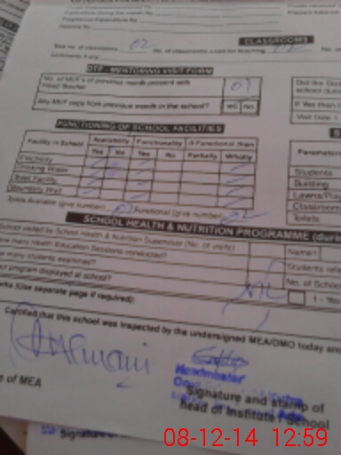 | Certified that this School was Inspected by the Undersigned MEA/DMO Today and the Information Stated Above is as Per Record. | |||||