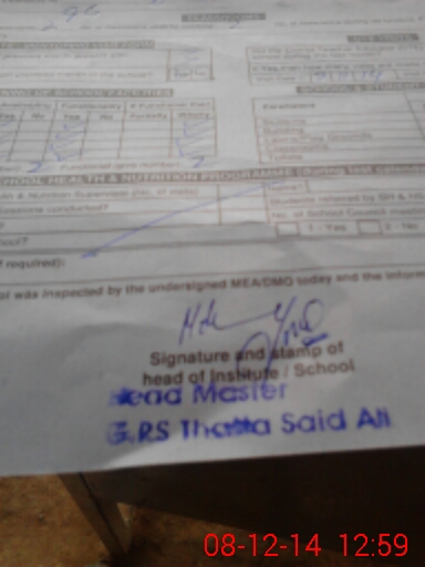 | Certified that this School was Inspected by the Undersigned MEA/DMO Today and the Information Stated Above is as Per Record. | |||||