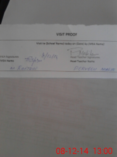 | Attendance Register | Head Teacher | MEA with School | Visit Proof |