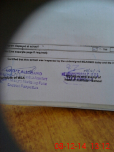 | Certified that this School was Inspected by the Undersigned MEA/DMO Today and the Information Stated Above is as Per Record. | |||||