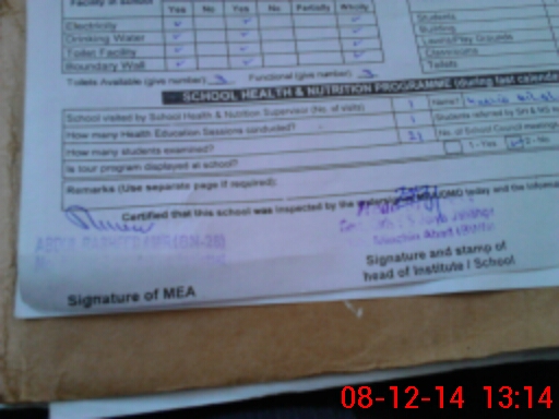 | Certified that this School was Inspected by the Undersigned MEA/DMO Today and the Information Stated Above is as Per Record. | |||||