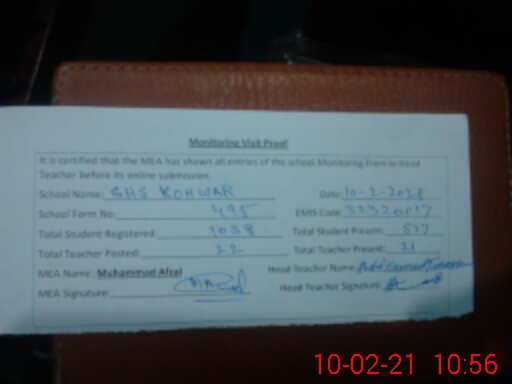 | EMIS Code: 32320017 | Name of School: GHS KOHAWAR | |||