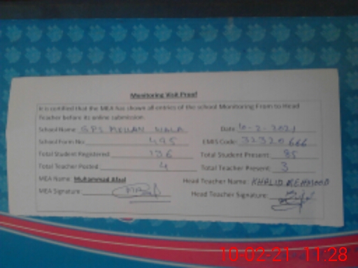 | EMIS Code: 32320666 | Name of School: GPS MULLAN WALA | |||