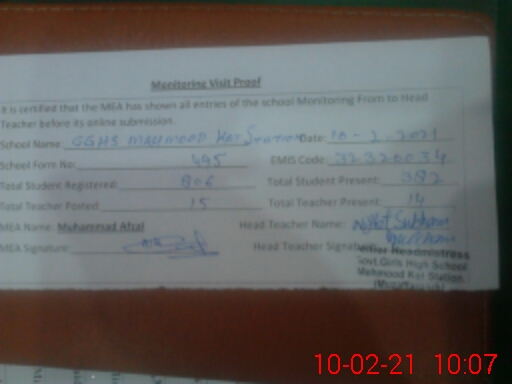 | EMIS Code: 32320034 | Name of School: GGHS MAHMOOD KOT STATION | |||