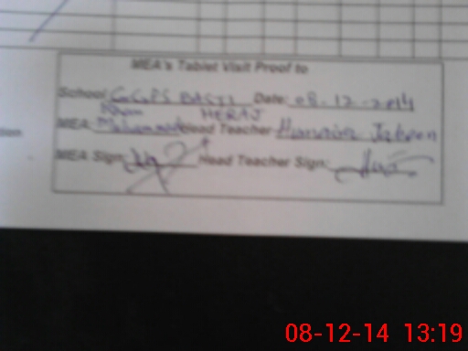 | Attendance Register | Head Teacher | MEA with School | Visit Proof |
