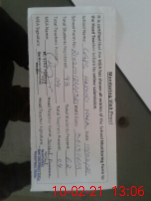 | Certified that this School was Inspected by the Undersigned MEA/DMO Today and the Information Stated Above is as Per Record. | |||||