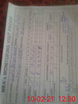 | Attendance Register | Head Teacher | MEA with School | Visit Proof |