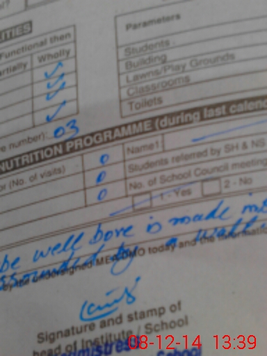| Remarks (Use Separate Page if Required): Tube well bore made inside boundary of school sorrounded by wall | |||||