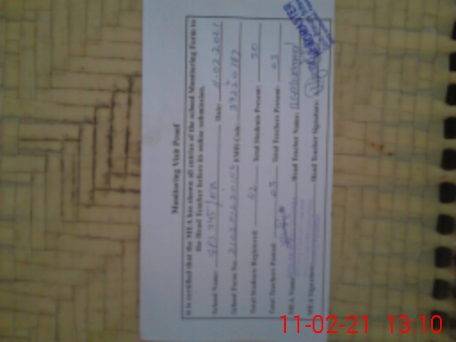 | Certified that this School was Inspected by the Undersigned MEA/DMO Today and the Information Stated Above is as Per Record. | |||||