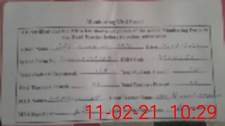 | Monitoring Date: 11-02-2021 | Start Time: 11-02-2021 09:56 AM | End Time: 11-02-2021 10:31 AM | Name of MEA: Mu**** Ub**** Ul**** | |