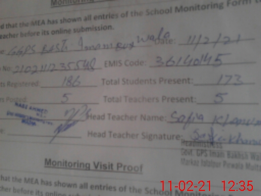 | Certified that this School was Inspected by the Undersigned MEA/DMO Today and the Information Stated Above is as Per Record. | |||||