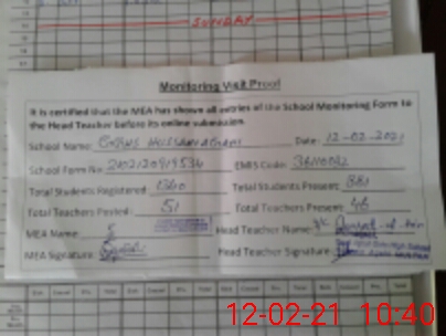 | Attendance Register | Head Teacher | MEA with School | Visit Proof |