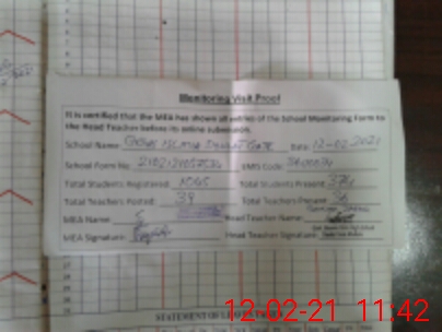 | Attendance Register | Head Teacher | MEA with School | Visit Proof |