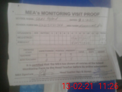 | Attendance Register | Head Teacher | MEA with School | Visit Proof |